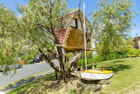 Your children will love the tree hut with its own yellow boat.