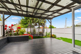 By-fold aluminium doors lead to the covered deck and private fully fenced front yard.